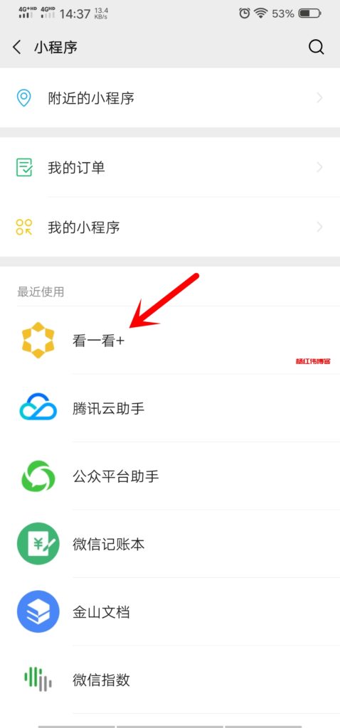 我们进小程序会看见一个看一看+的小程序,点击进去后用微信号登陆就可以了。